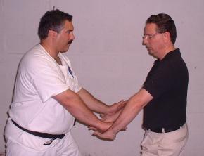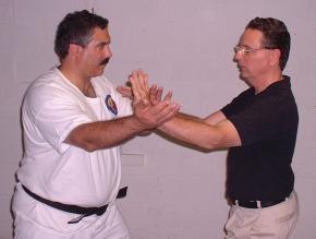 Grandmaster Rose demonstrating "Chi-Sau" with Pending Black Belt Scott Williams of the Rose School of Karate