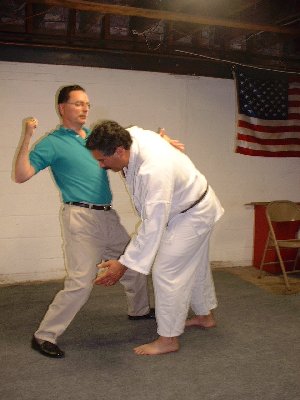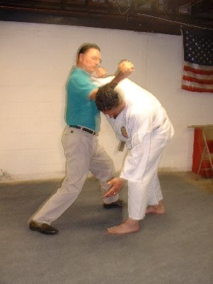 Grandmaster Rose demonstrating the "Leveraged Takedown" self defense technique against Nikyu Scott Williams of the Rose School of Karate