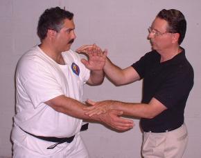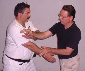 Grandmaster Rose demonstrating "Chi-Sau" with Pending Black Belt Scott Williams of the Rose School of Karate