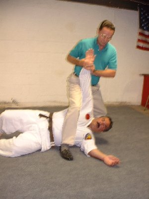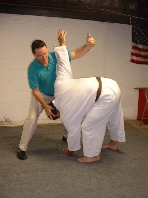 Grandmaster Rose demonstrating the "Leveraged Takedown" self defense technique against Nikyu Scott Williams of the Rose School of Karate